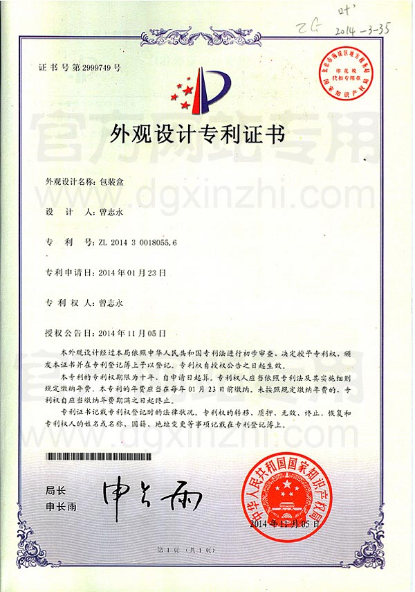 • 國際知識產(chǎn)權(quán)組織(WIPO)認(rèn)證證書